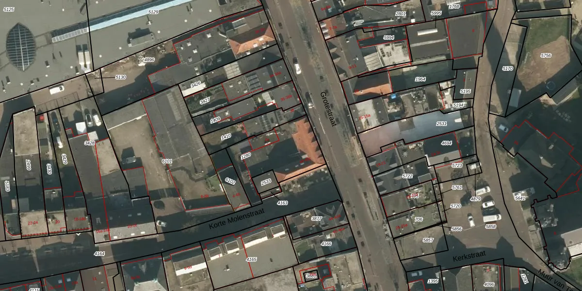 Grotestraat 40-b is gelegen op kadastraal perceel CUI00C1280. Deze kadastrale aanduiding is uniek en wordt gebruikt door het Kadaster om eigendomsrechten en andere zakelijke rechten vast te leggen. Het perceel maakt onderdeel uit van de kadastrale gemeente Cuijk.