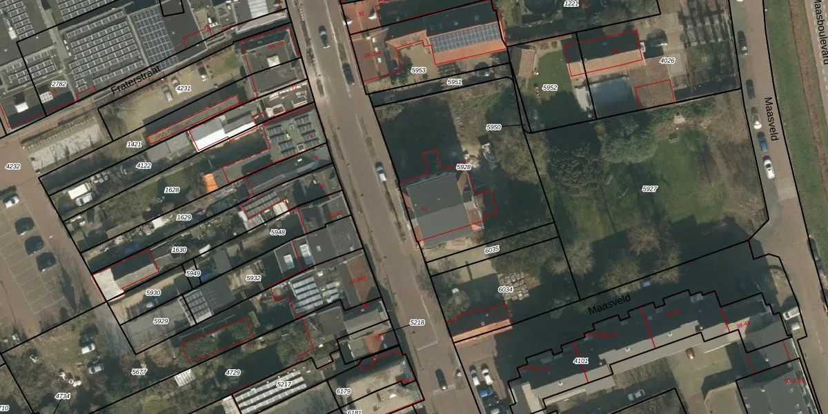 Grotestraat 41 is gelegen op kadastraal perceel CUI00C5928. Deze kadastrale aanduiding is uniek en wordt gebruikt door het Kadaster om eigendomsrechten en andere zakelijke rechten vast te leggen. Het perceel maakt onderdeel uit van de kadastrale gemeente Cuijk.