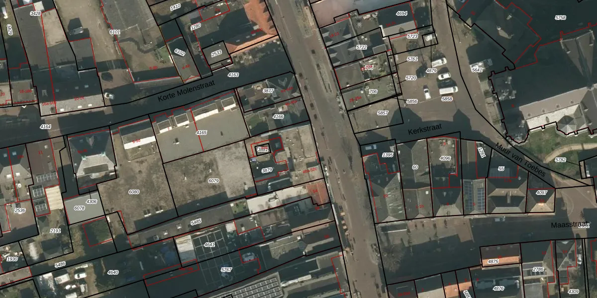 Grotestraat 50-b is gelegen op kadastraal perceel CUI00C3879. Deze kadastrale aanduiding is uniek en wordt gebruikt door het Kadaster om eigendomsrechten en andere zakelijke rechten vast te leggen. Het perceel maakt onderdeel uit van de kadastrale gemeente Cuijk.