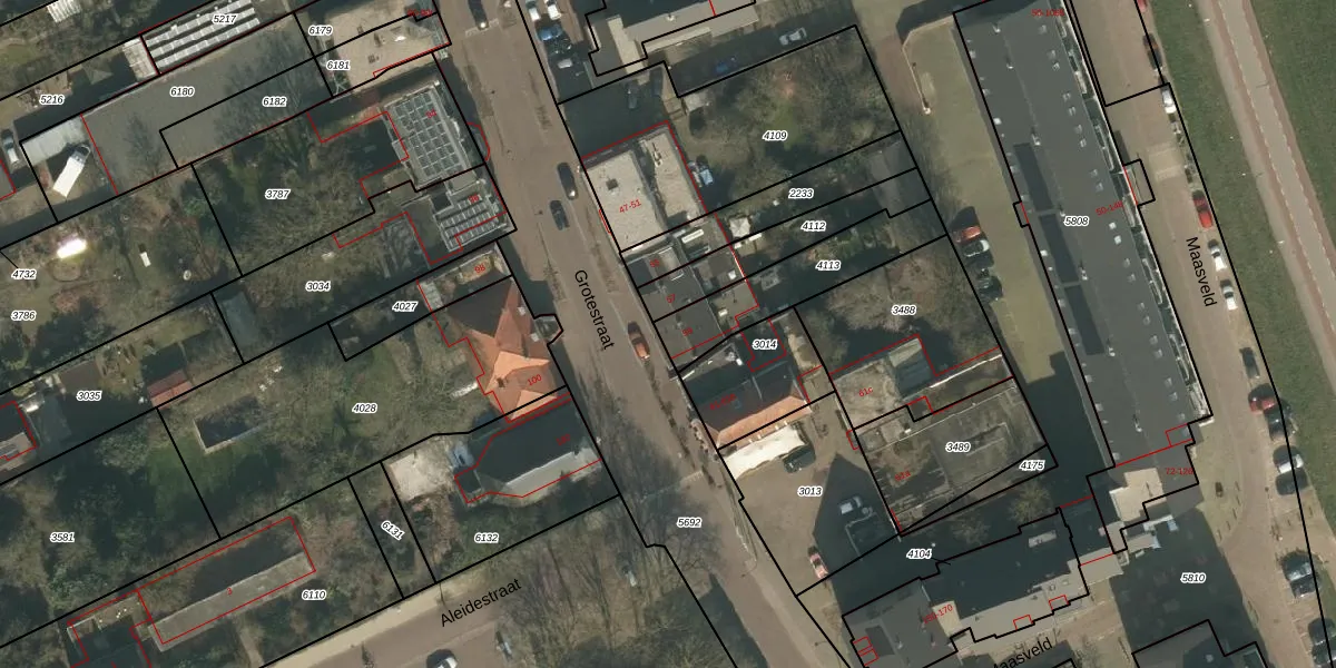 Grotestraat 59 is gelegen op kadastraal perceel CUI00C4113. Deze kadastrale aanduiding is uniek en wordt gebruikt door het Kadaster om eigendomsrechten en andere zakelijke rechten vast te leggen. Het perceel maakt onderdeel uit van de kadastrale gemeente Cuijk.
