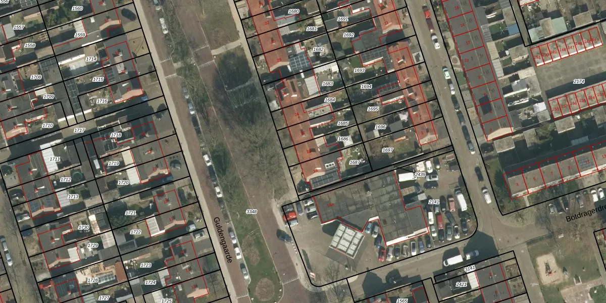 Het perceel waarop Guldengaarde 20 staat heeft een oppervlakte van 163 m². Dit is een middelgroot perceel. De perceeloppervlakte wordt geregistreerd door het Kadaster. Gedetailleerde informatie over de maten van dit perceel kunt u vinden in het rapport Kadastrale kaart met maatvoering van Guldengaarde 20.