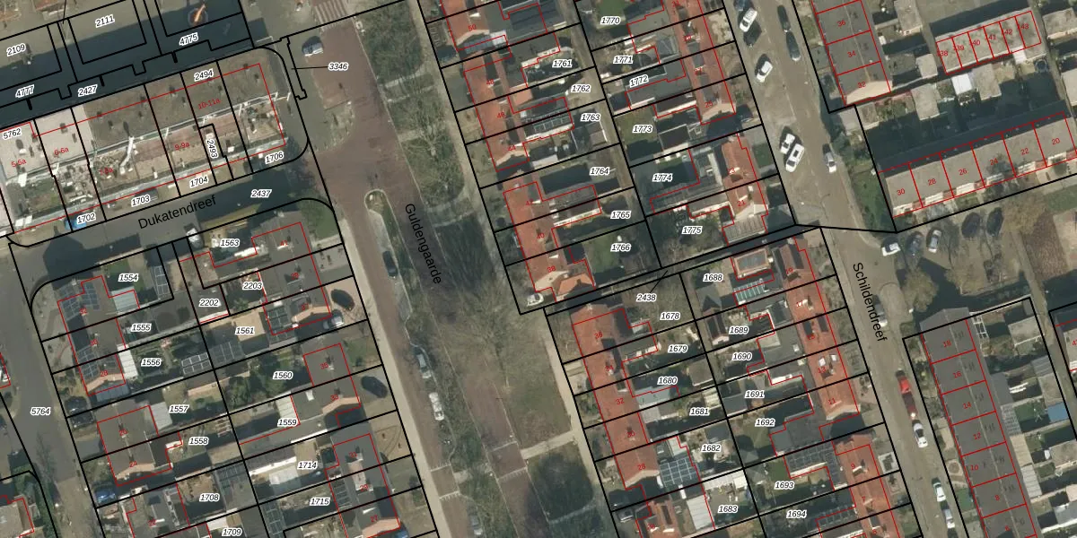 Gebruik de zoekbalk of klik op een perceel voor informatie over de adressen binnen dit perceel.