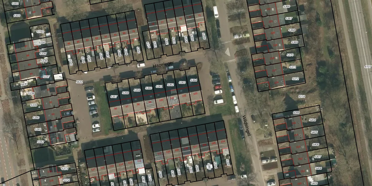 Hazeleger 102 is gelegen op kadastraal perceel CUI00C5363. Deze kadastrale aanduiding is uniek en wordt gebruikt door het Kadaster om eigendomsrechten en andere zakelijke rechten vast te leggen. Het perceel maakt onderdeel uit van de kadastrale gemeente Cuijk.