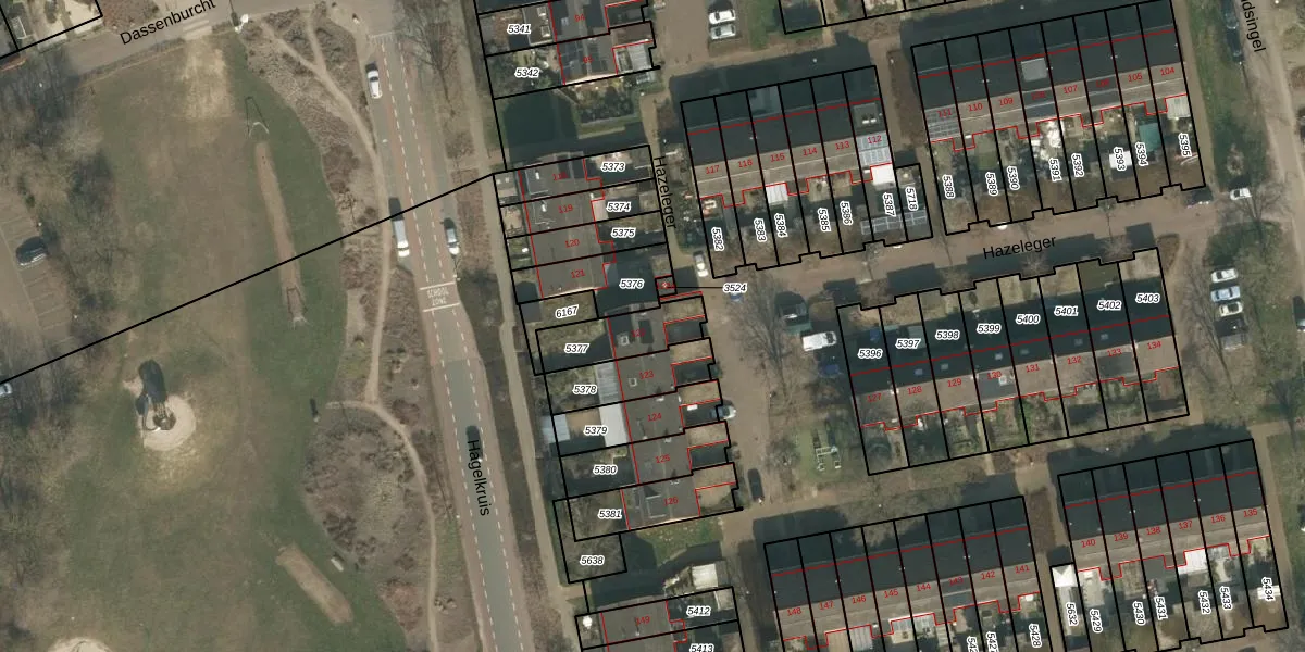 Hazeleger 122 is gelegen op kadastraal perceel CUI00C5377. Deze kadastrale aanduiding is uniek en wordt gebruikt door het Kadaster om eigendomsrechten en andere zakelijke rechten vast te leggen. Het perceel maakt onderdeel uit van de kadastrale gemeente Cuijk.