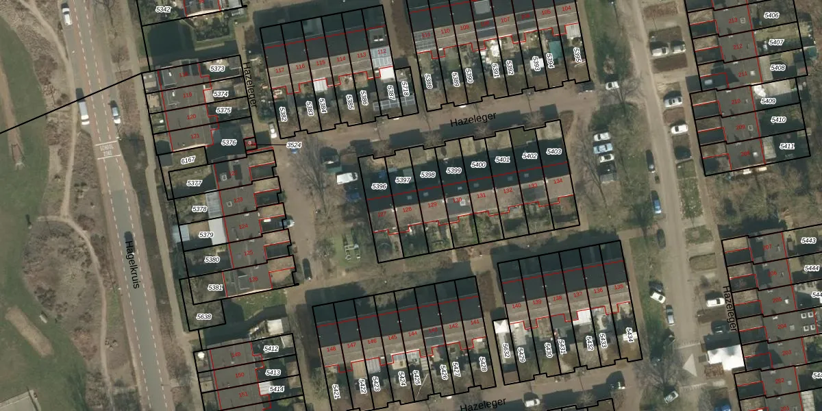 Het perceel waarop Hazeleger 128 staat heeft een oppervlakte van 159 m². Dit is een middelgroot perceel. De perceeloppervlakte wordt geregistreerd door het Kadaster. Gedetailleerde informatie over de maten van dit perceel kunt u vinden in het rapport Kadastrale kaart met maatvoering van Hazeleger 128.
