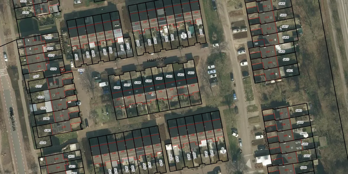 Hazeleger 132 is gelegen op kadastraal perceel CUI00C5401. Deze kadastrale aanduiding is uniek en wordt gebruikt door het Kadaster om eigendomsrechten en andere zakelijke rechten vast te leggen. Het perceel maakt onderdeel uit van de kadastrale gemeente Cuijk.