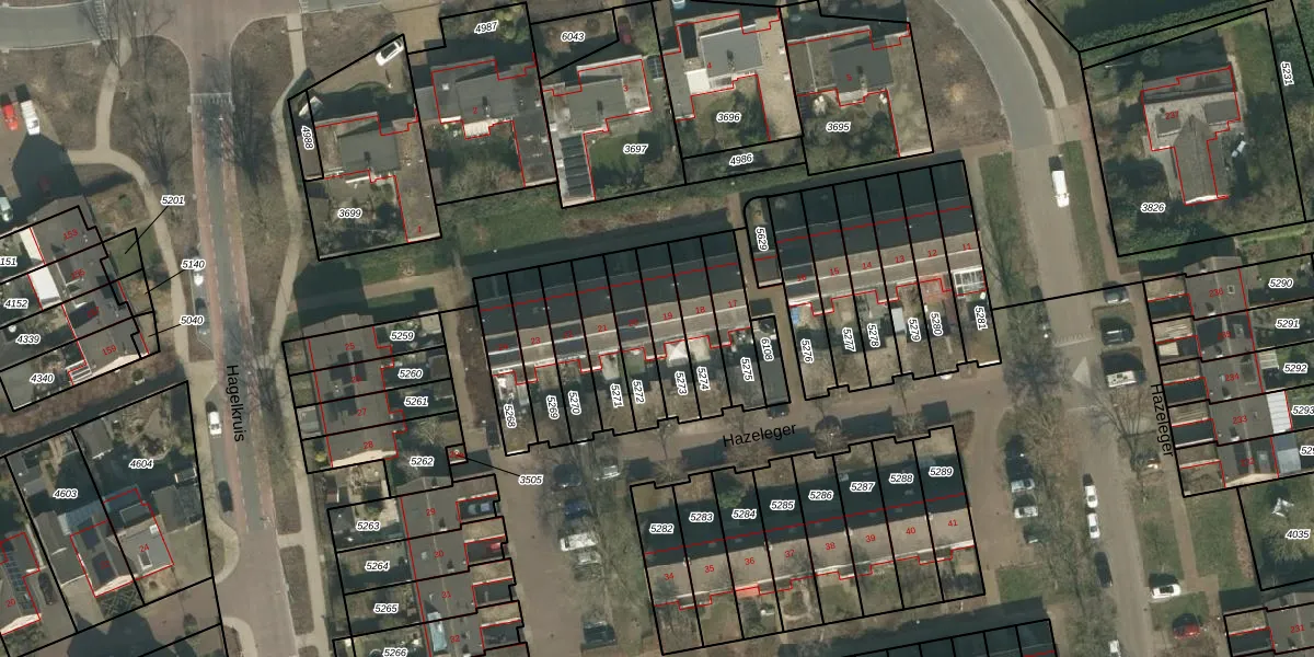 Gebruik de zoekbalk of klik op een perceel voor informatie over de adressen binnen dit perceel.