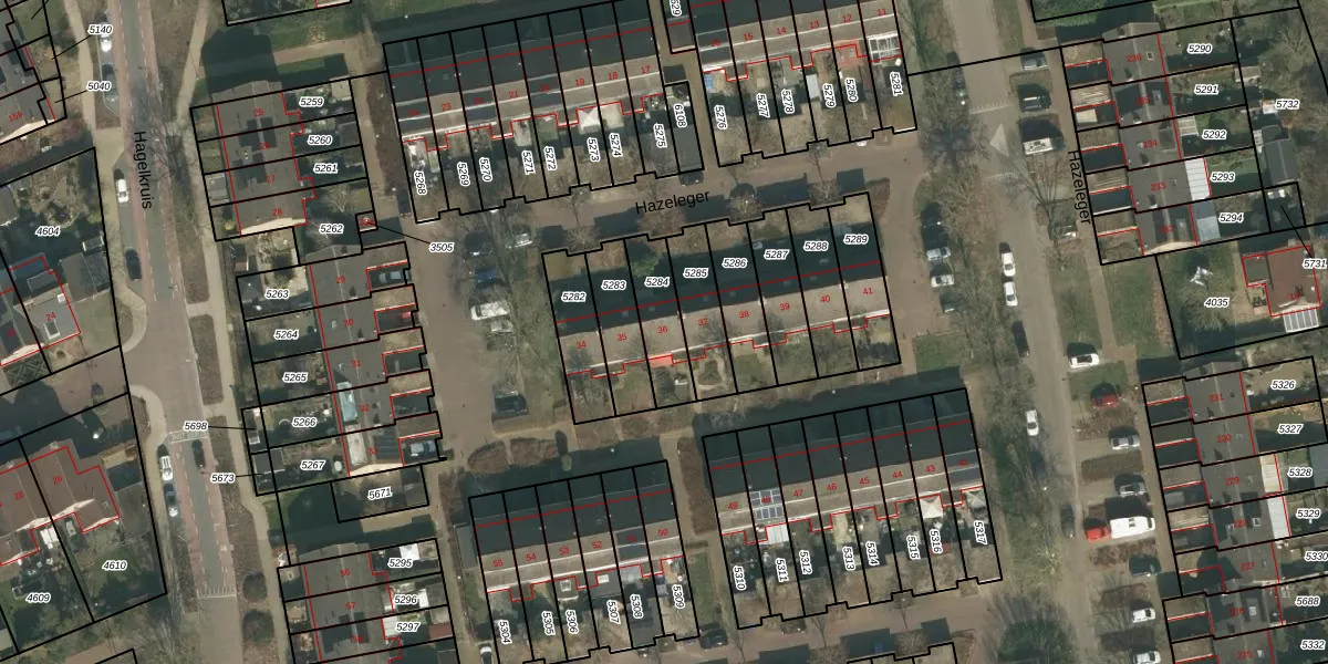 Gebruik de zoekbalk of klik op een perceel voor informatie over de adressen binnen dit perceel.