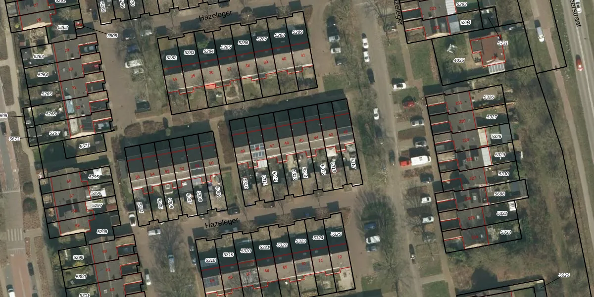 Het perceel waarop Hazeleger 45 staat heeft een oppervlakte van 145 m². Dit is een middelgroot perceel. De perceeloppervlakte wordt geregistreerd door het Kadaster. Gedetailleerde informatie over de maten van dit perceel kunt u vinden in het rapport Kadastrale kaart met maatvoering van Hazeleger 45.
