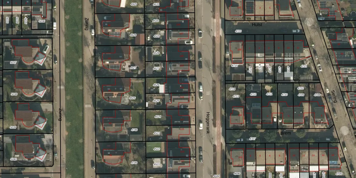 Heggerank 121 is gelegen op kadastraal perceel CUI00A4526. Deze kadastrale aanduiding is uniek en wordt gebruikt door het Kadaster om eigendomsrechten en andere zakelijke rechten vast te leggen. Het perceel maakt onderdeel uit van de kadastrale gemeente Cuijk.