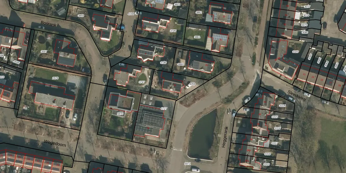 Gebruik de zoekbalk of klik op een perceel voor informatie over de adressen binnen dit perceel.