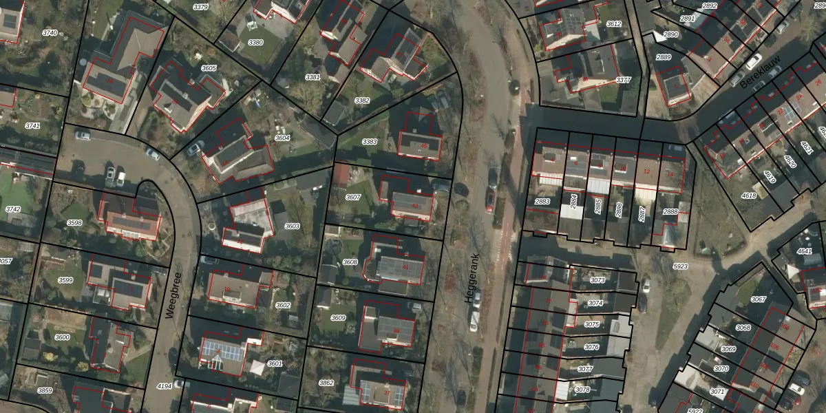 Het perceel waarop Heggerank 43 staat heeft een oppervlakte van 436 m². Dit is een groot perceel. De perceeloppervlakte wordt geregistreerd door het Kadaster. Gedetailleerde informatie over de maten van dit perceel kunt u vinden in het rapport Kadastrale kaart met maatvoering van Heggerank 43.