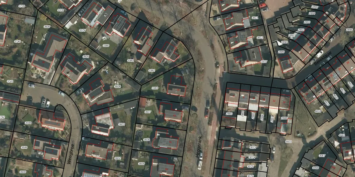 Het perceel waarop Heggerank 45 staat heeft een oppervlakte van 488 m². Dit is een groot perceel. De perceeloppervlakte wordt geregistreerd door het Kadaster. Gedetailleerde informatie over de maten van dit perceel kunt u vinden in het rapport Kadastrale kaart met maatvoering van Heggerank 45.