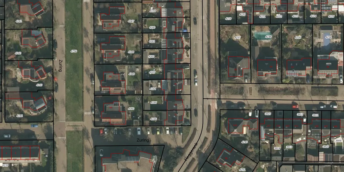 Gebruik de zoekbalk of klik op een perceel voor informatie over de adressen binnen dit perceel.
