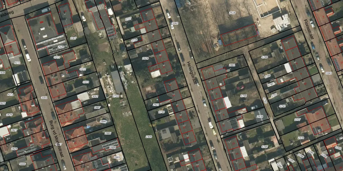 Het perceel waarop Helwigstraat 14 staat heeft een oppervlakte van 829 m². Dit is een groot perceel. De perceeloppervlakte wordt geregistreerd door het Kadaster. Gedetailleerde informatie over de maten van dit perceel kunt u vinden in het rapport Kadastrale kaart met maatvoering van Helwigstraat 14.