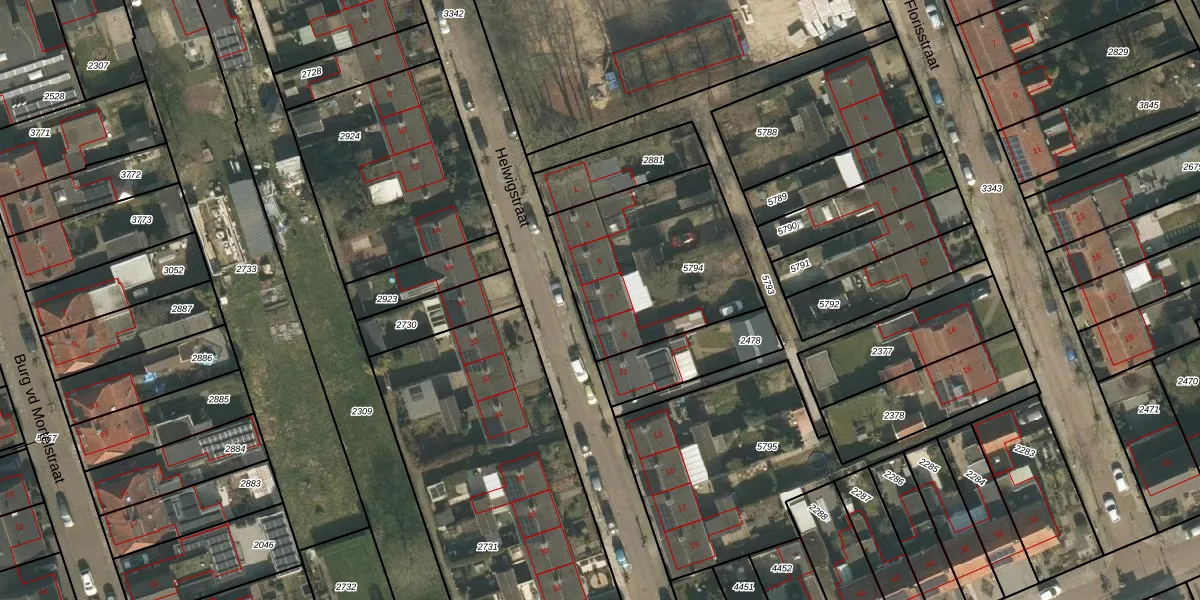 Het perceel waarop Helwigstraat 7 staat heeft een oppervlakte van 755 m². Dit is een groot perceel. De perceeloppervlakte wordt geregistreerd door het Kadaster. Gedetailleerde informatie over de maten van dit perceel kunt u vinden in het rapport Kadastrale kaart met maatvoering van Helwigstraat 7.