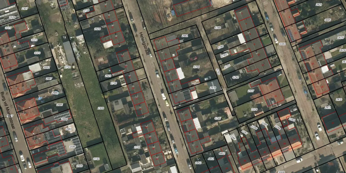Het perceel waarop Helwigstraat 9 staat heeft een oppervlakte van 755 m². Dit is een groot perceel. De perceeloppervlakte wordt geregistreerd door het Kadaster. Gedetailleerde informatie over de maten van dit perceel kunt u vinden in het rapport Kadastrale kaart met maatvoering van Helwigstraat 9.