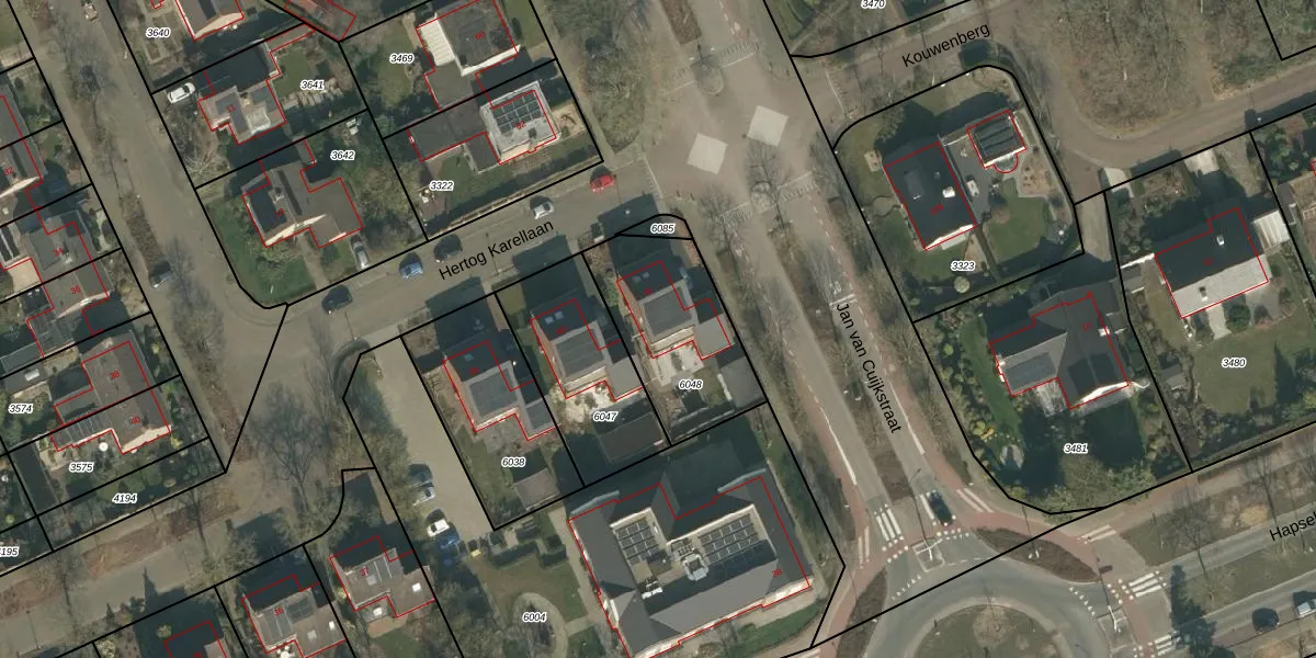 Hertog Karellaan 41 is gelegen op kadastraal perceel CUI00C6048. Deze kadastrale aanduiding is uniek en wordt gebruikt door het Kadaster om eigendomsrechten en andere zakelijke rechten vast te leggen. Het perceel maakt onderdeel uit van de kadastrale gemeente Cuijk.