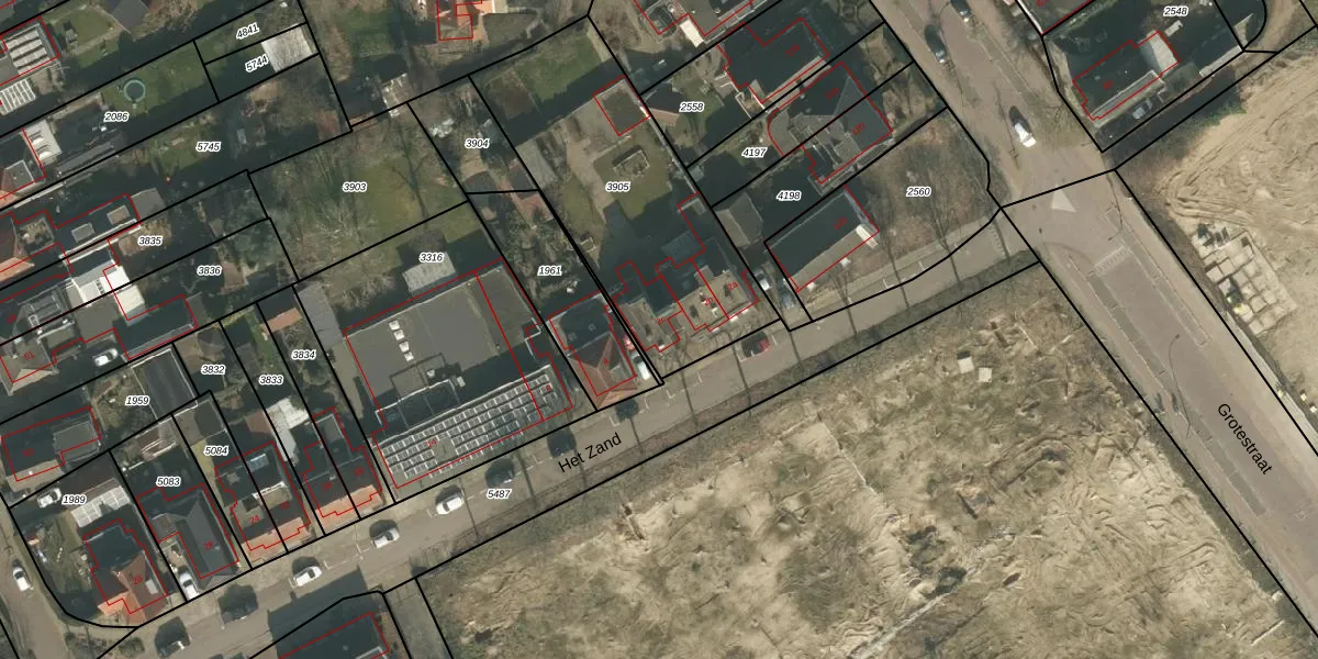 Het perceel waarop Het Zand 2-c staat heeft een oppervlakte van 1102 m². Dit is een zeer groot perceel. De perceeloppervlakte wordt geregistreerd door het Kadaster. Gedetailleerde informatie over de maten van dit perceel kunt u vinden in het rapport Kadastrale kaart met maatvoering van Het Zand 2-c.