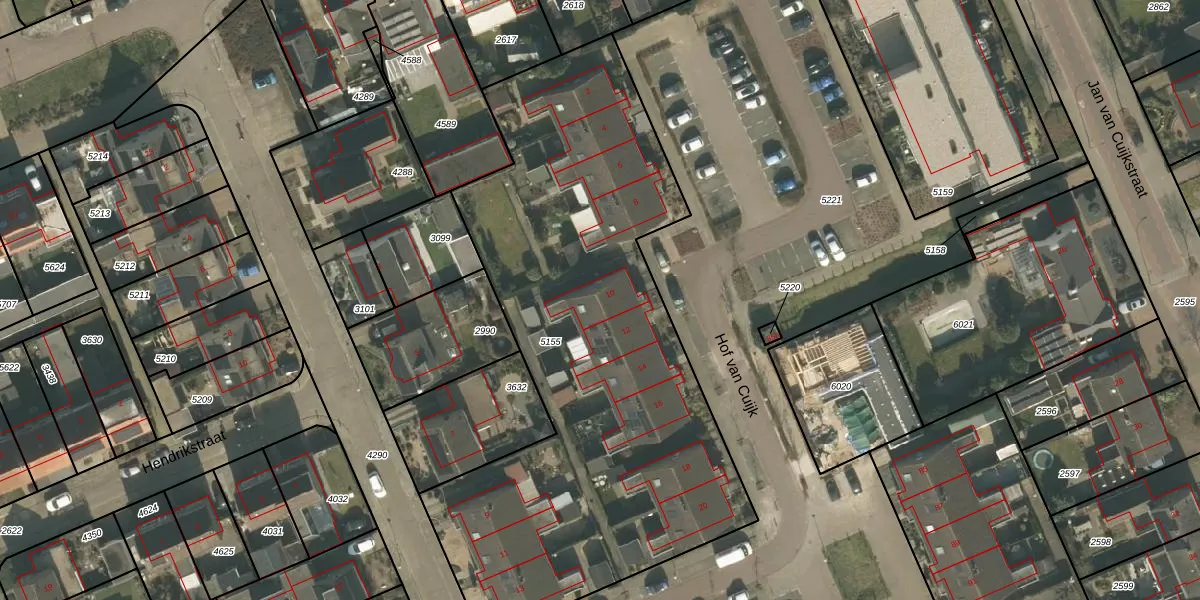 Het perceel waarop Hof van Cuijk 10 staat heeft een oppervlakte van 2955 m². Dit is een zeer groot perceel. De perceeloppervlakte wordt geregistreerd door het Kadaster. Gedetailleerde informatie over de maten van dit perceel kunt u vinden in het rapport Kadastrale kaart met maatvoering van Hof van Cuijk 10.