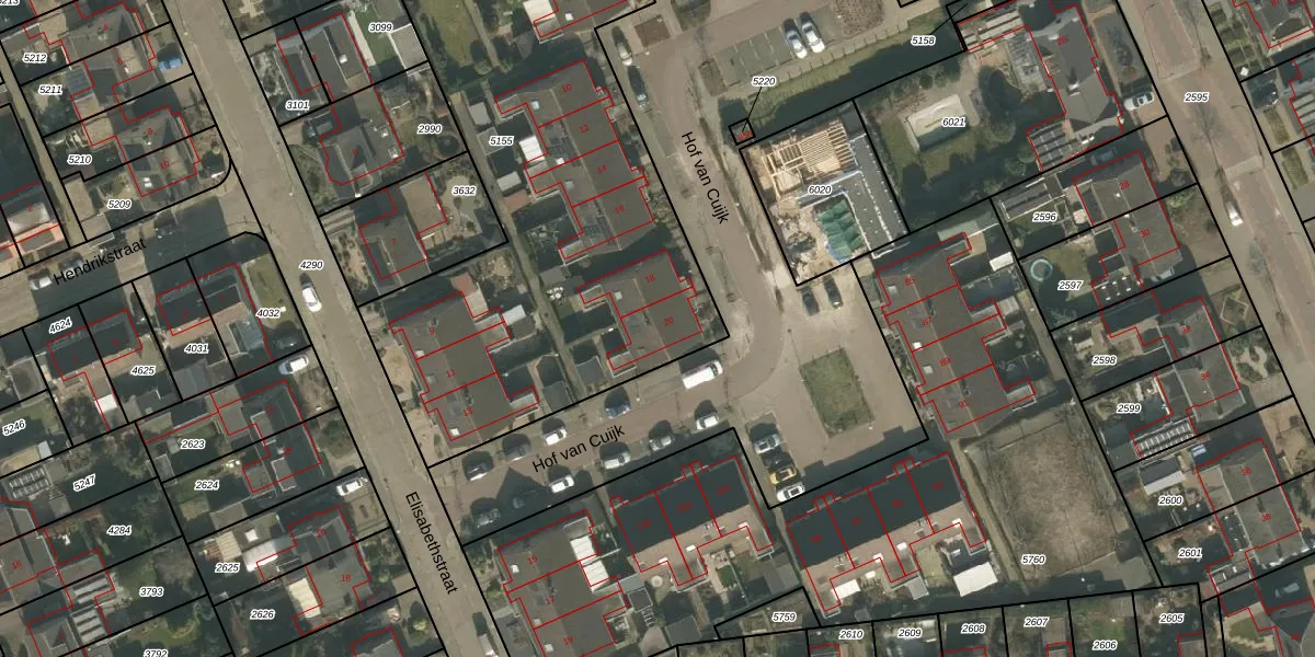Het perceel waarop Hof van Cuijk 20 staat heeft een oppervlakte van 2955 m². Dit is een zeer groot perceel. De perceeloppervlakte wordt geregistreerd door het Kadaster. Gedetailleerde informatie over de maten van dit perceel kunt u vinden in het rapport Kadastrale kaart met maatvoering van Hof van Cuijk 20.