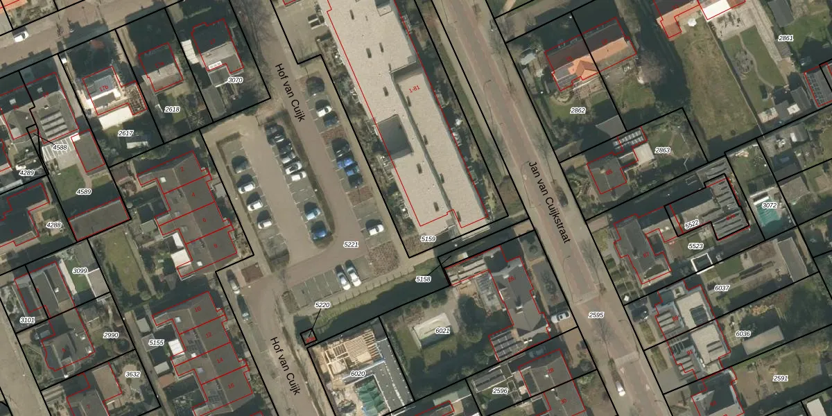 Hof van Cuijk 21 is gelegen op kadastraal perceel CUI00C5159. Deze kadastrale aanduiding is uniek en wordt gebruikt door het Kadaster om eigendomsrechten en andere zakelijke rechten vast te leggen. Het perceel maakt onderdeel uit van de kadastrale gemeente Cuijk.