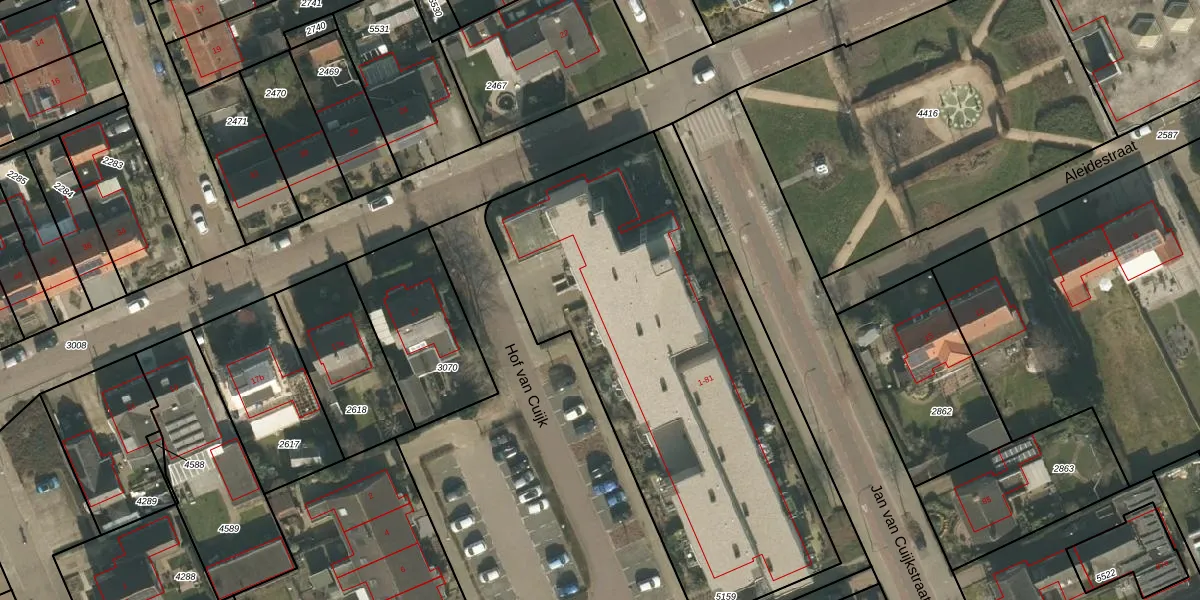 Het perceel waarop Hof van Cuijk 3 staat heeft een oppervlakte van 2170 m². Dit is een zeer groot perceel. De perceeloppervlakte wordt geregistreerd door het Kadaster. Gedetailleerde informatie over de maten van dit perceel kunt u vinden in het rapport Kadastrale kaart met maatvoering van Hof van Cuijk 3.