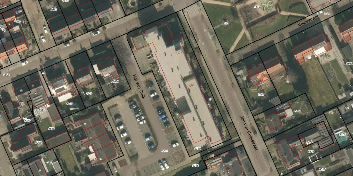 Het perceel waarop Hof van Cuijk 35 staat heeft een oppervlakte van 2170 m². Dit is een zeer groot perceel. De perceeloppervlakte wordt geregistreerd door het Kadaster. Gedetailleerde informatie over de maten van dit perceel kunt u vinden in het rapport Kadastrale kaart met maatvoering van Hof van Cuijk 35.