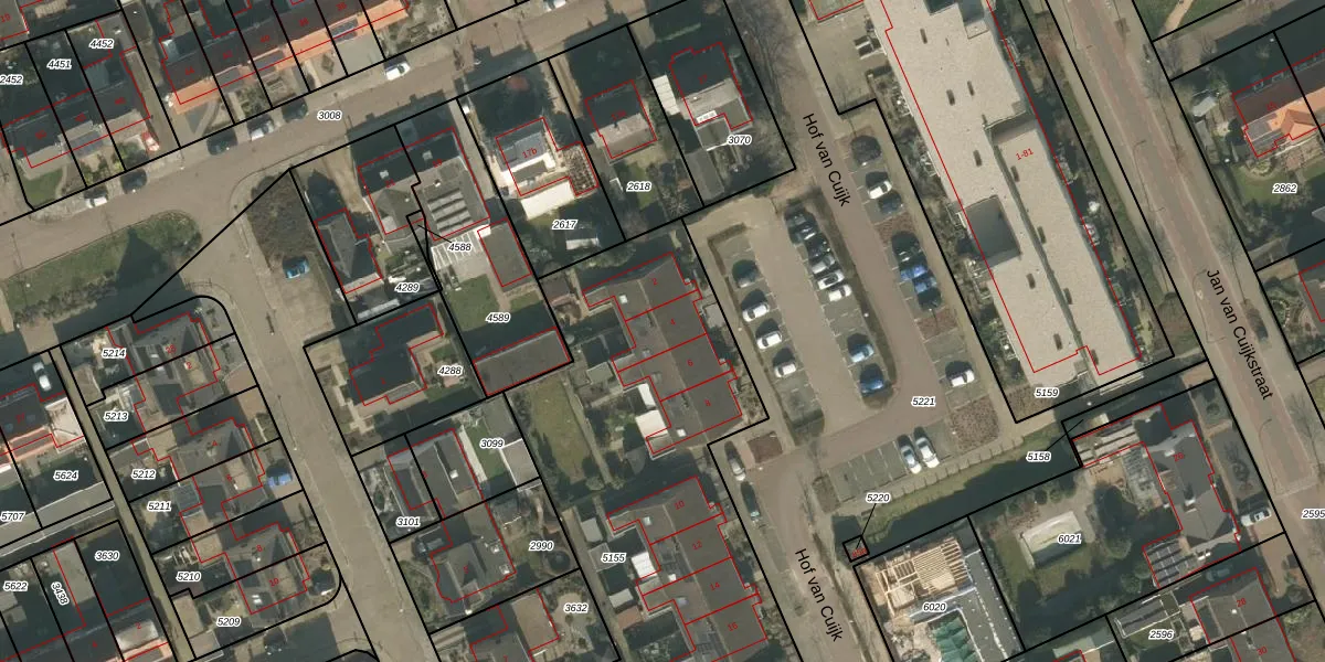 Het perceel waarop Hof van Cuijk 4 staat heeft een oppervlakte van 2955 m². Dit is een zeer groot perceel. De perceeloppervlakte wordt geregistreerd door het Kadaster. Gedetailleerde informatie over de maten van dit perceel kunt u vinden in het rapport Kadastrale kaart met maatvoering van Hof van Cuijk 4.