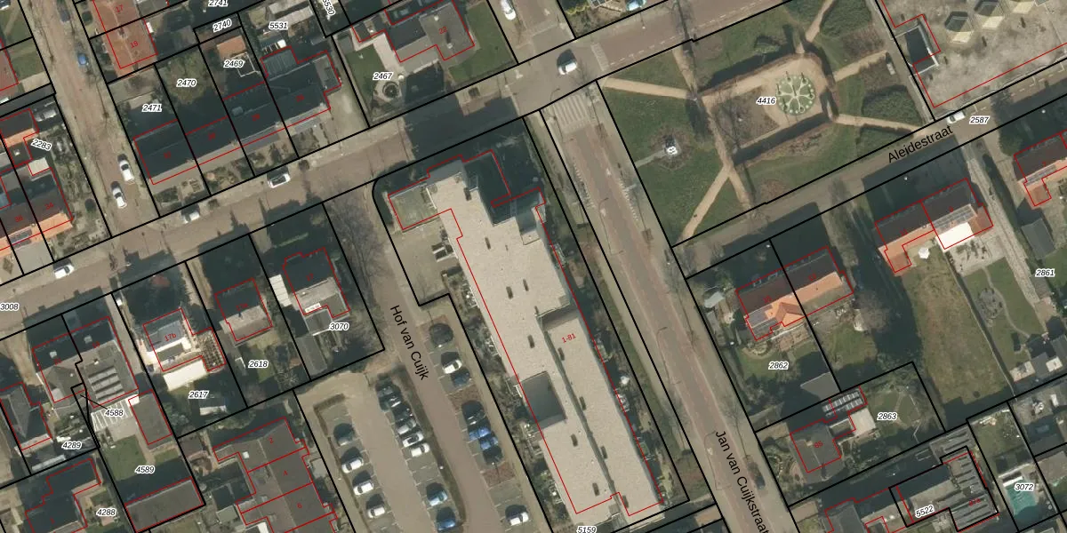 Het perceel waarop Hof van Cuijk 69 staat heeft een oppervlakte van 2170 m². Dit is een zeer groot perceel. De perceeloppervlakte wordt geregistreerd door het Kadaster. Gedetailleerde informatie over de maten van dit perceel kunt u vinden in het rapport Kadastrale kaart met maatvoering van Hof van Cuijk 69.