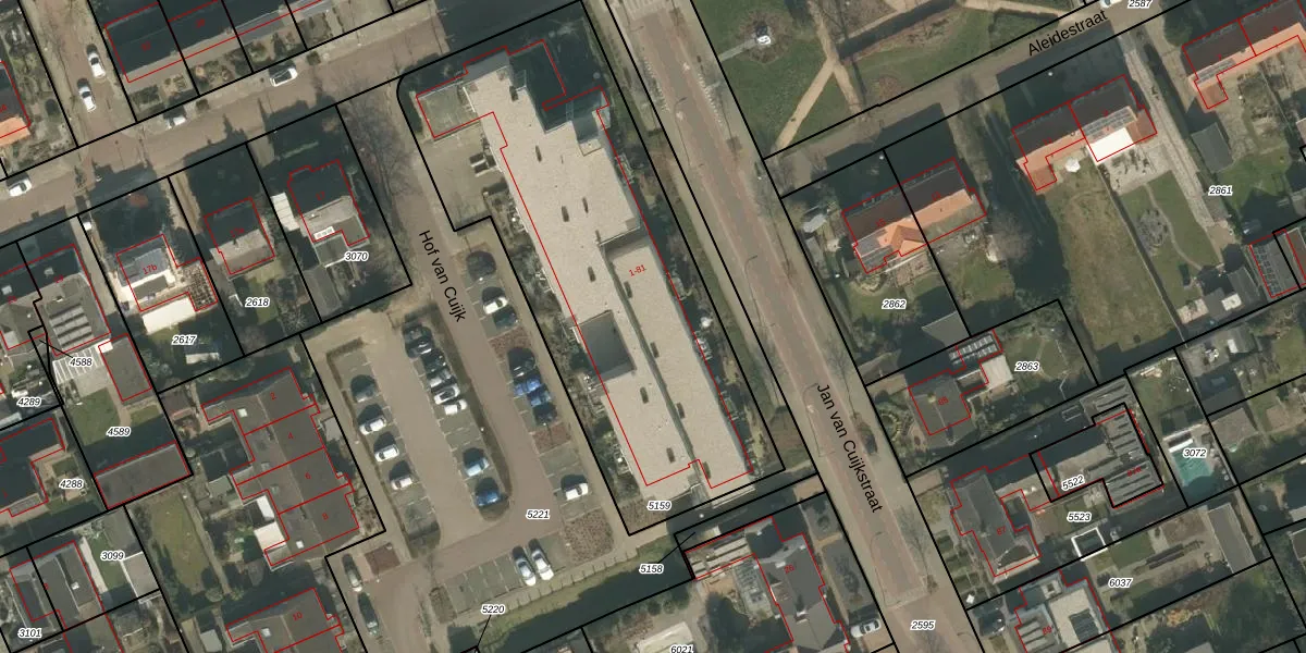 Hof van Cuijk 79 is gelegen op kadastraal perceel CUI00C5159. Deze kadastrale aanduiding is uniek en wordt gebruikt door het Kadaster om eigendomsrechten en andere zakelijke rechten vast te leggen. Het perceel maakt onderdeel uit van de kadastrale gemeente Cuijk.