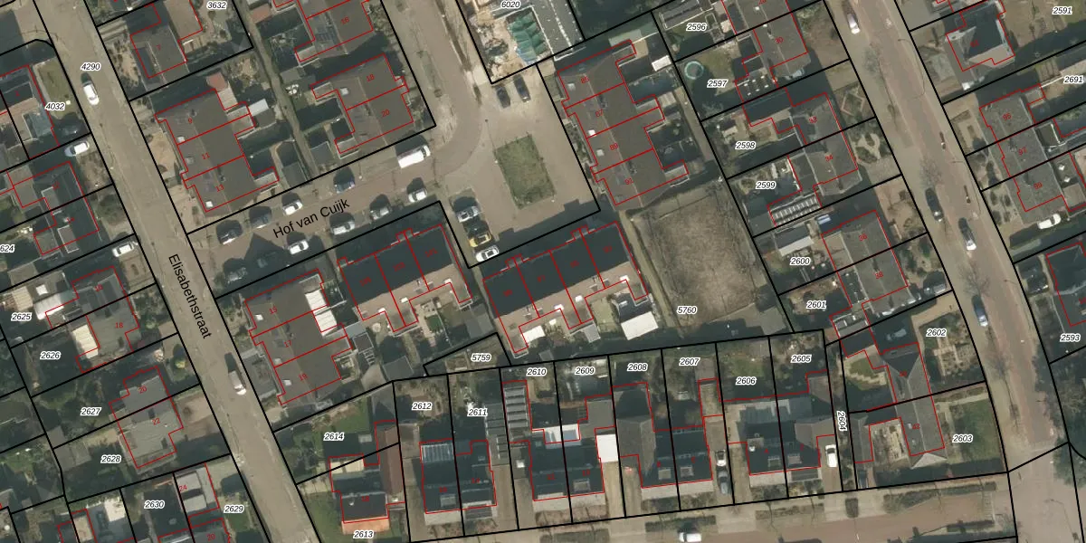 Hof van Cuijk 97 is gelegen op kadastraal perceel CUI00C5760. Deze kadastrale aanduiding is uniek en wordt gebruikt door het Kadaster om eigendomsrechten en andere zakelijke rechten vast te leggen. Het perceel maakt onderdeel uit van de kadastrale gemeente Cuijk.