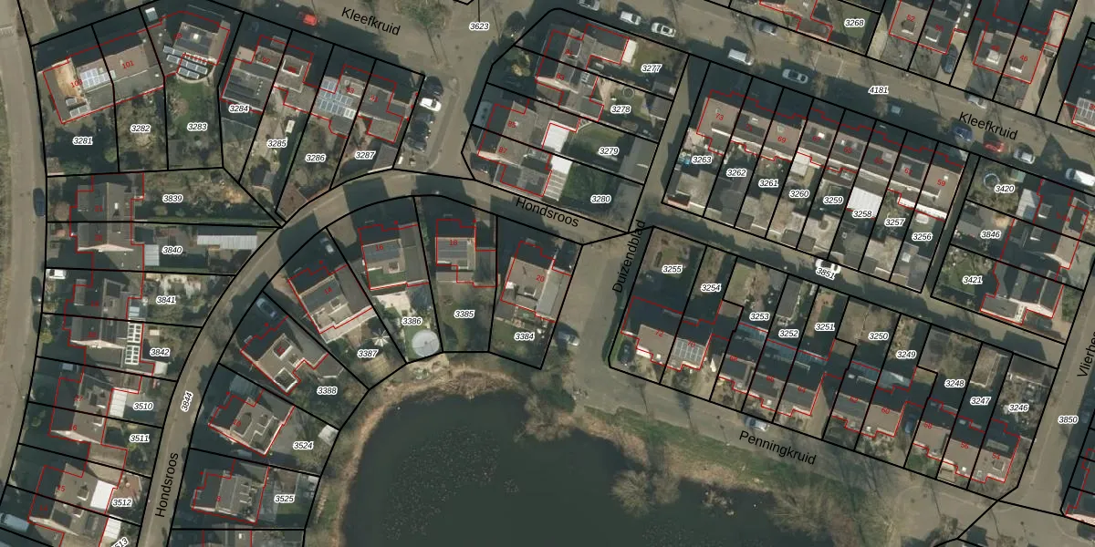 Het perceel waarop Hondsroos 20 staat heeft een oppervlakte van 311 m². Dit is een groot perceel. De perceeloppervlakte wordt geregistreerd door het Kadaster. Gedetailleerde informatie over de maten van dit perceel kunt u vinden in het rapport Kadastrale kaart met maatvoering van Hondsroos 20.