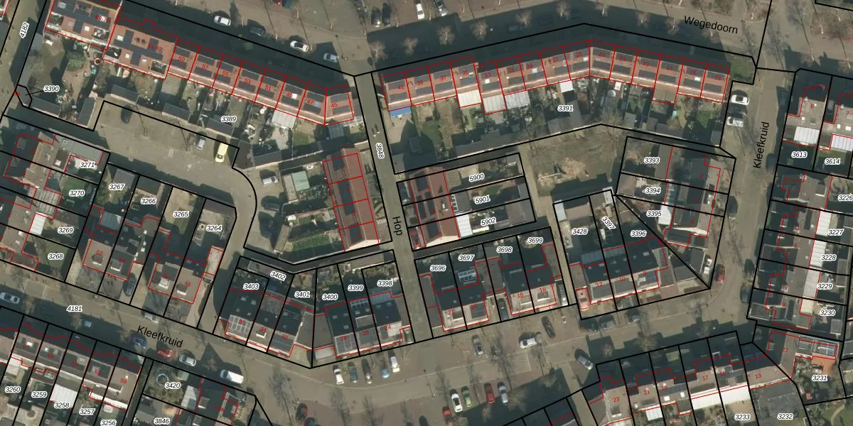Gebruik de zoekbalk of klik op een perceel voor informatie over de adressen binnen dit perceel.