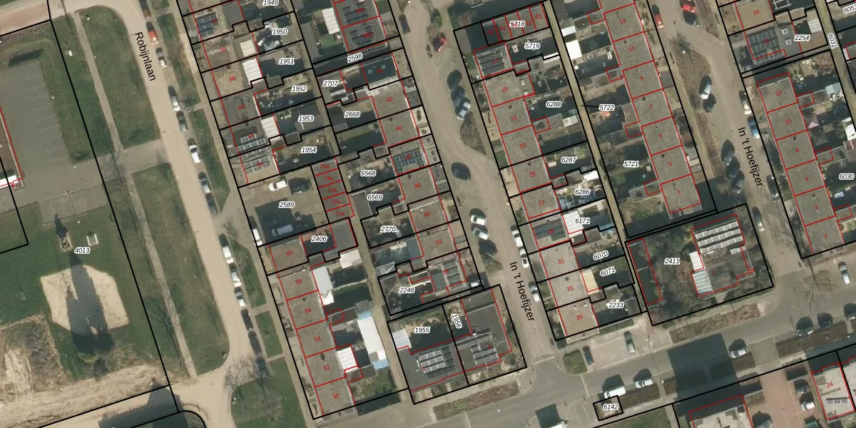 Gebruik de zoekbalk of klik op een perceel voor informatie over de adressen binnen dit perceel.