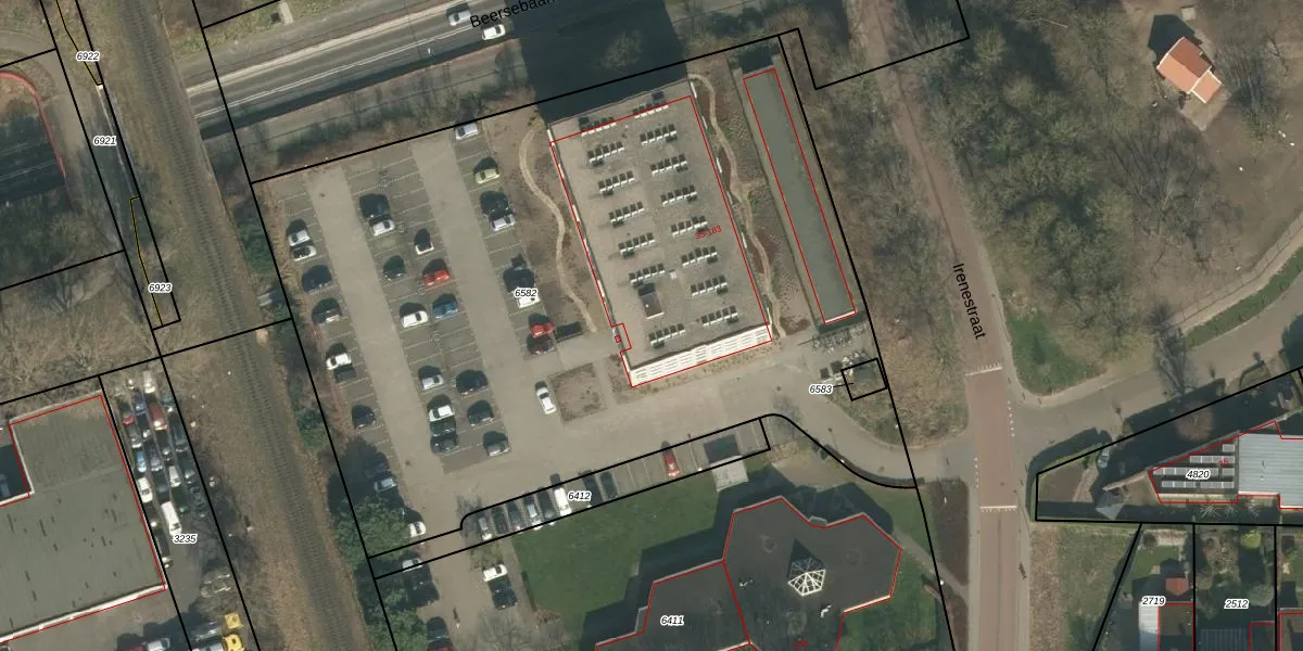 Het perceel waarop Irenestraat 121 staat heeft een oppervlakte van 4983 m². Dit is een zeer groot perceel. De perceeloppervlakte wordt geregistreerd door het Kadaster. Gedetailleerde informatie over de maten van dit perceel kunt u vinden in het rapport Kadastrale kaart met maatvoering van Irenestraat 121.