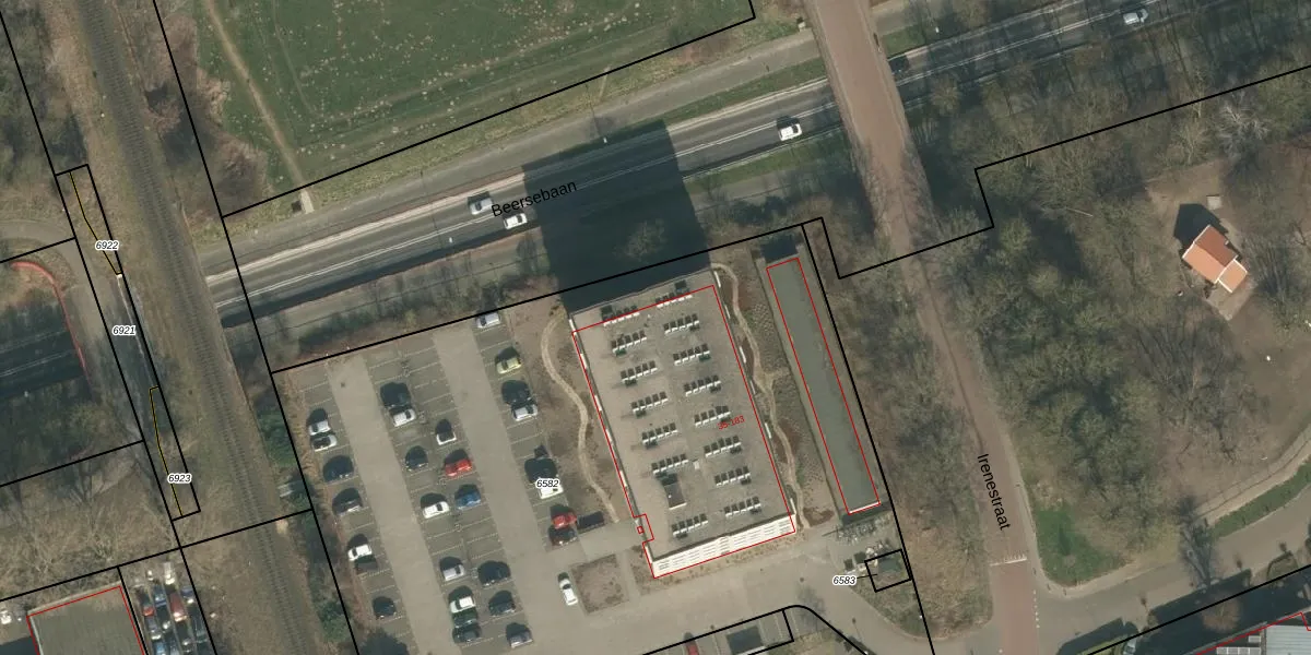 Het perceel waarop Irenestraat 169 staat heeft een oppervlakte van 4983 m². Dit is een zeer groot perceel. De perceeloppervlakte wordt geregistreerd door het Kadaster. Gedetailleerde informatie over de maten van dit perceel kunt u vinden in het rapport Kadastrale kaart met maatvoering van Irenestraat 169.