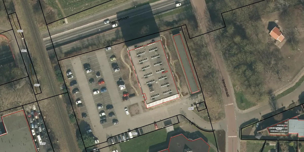 Het perceel waarop Irenestraat 179 staat heeft een oppervlakte van 4983 m². Dit is een zeer groot perceel. De perceeloppervlakte wordt geregistreerd door het Kadaster. Gedetailleerde informatie over de maten van dit perceel kunt u vinden in het rapport Kadastrale kaart met maatvoering van Irenestraat 179.