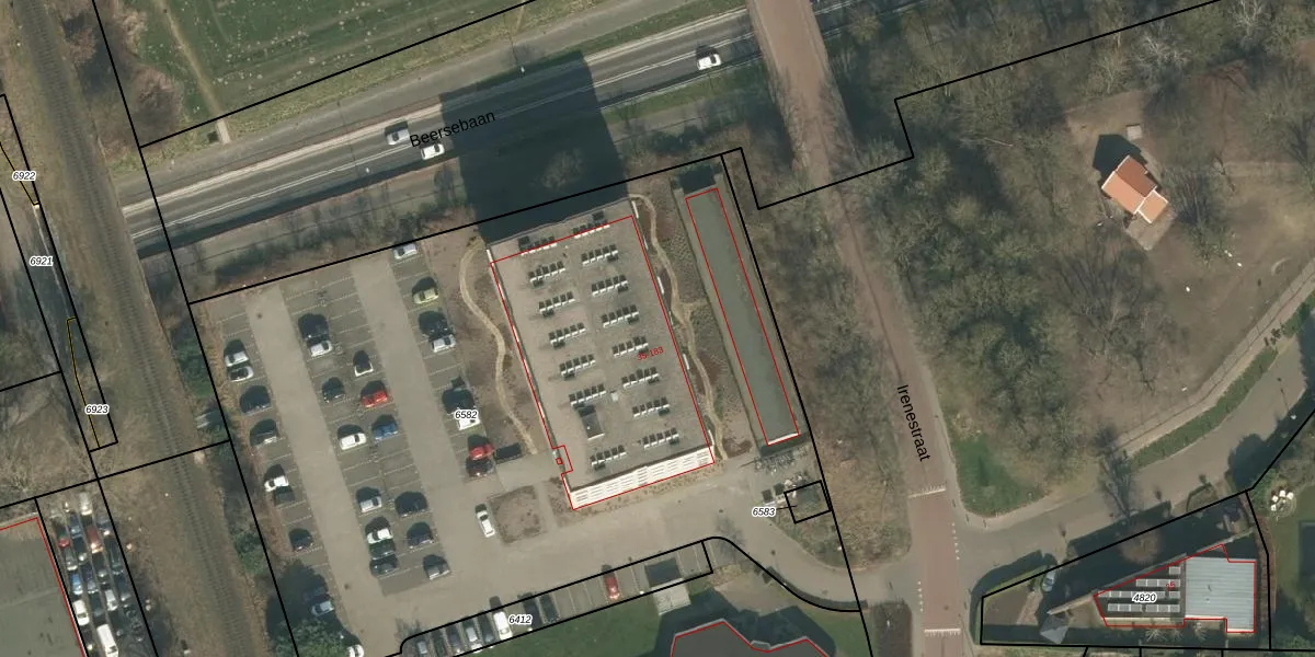 Het perceel waarop Irenestraat 41 staat heeft een oppervlakte van 4983 m². Dit is een zeer groot perceel. De perceeloppervlakte wordt geregistreerd door het Kadaster. Gedetailleerde informatie over de maten van dit perceel kunt u vinden in het rapport Kadastrale kaart met maatvoering van Irenestraat 41.