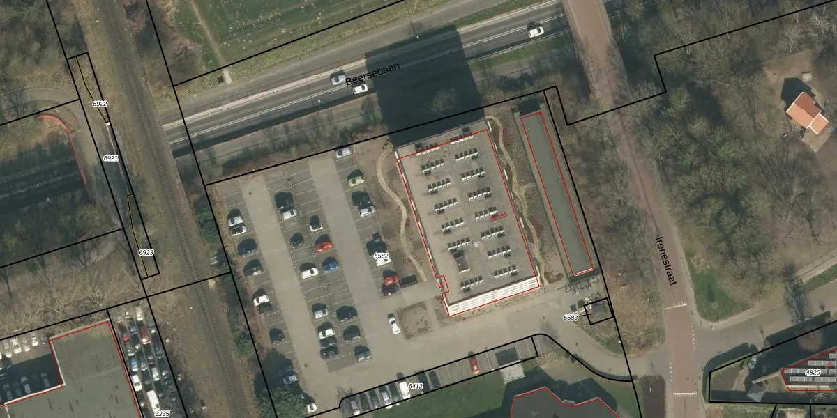 Het perceel waarop Irenestraat 57 staat heeft een oppervlakte van 4983 m². Dit is een zeer groot perceel. De perceeloppervlakte wordt geregistreerd door het Kadaster. Gedetailleerde informatie over de maten van dit perceel kunt u vinden in het rapport Kadastrale kaart met maatvoering van Irenestraat 57.