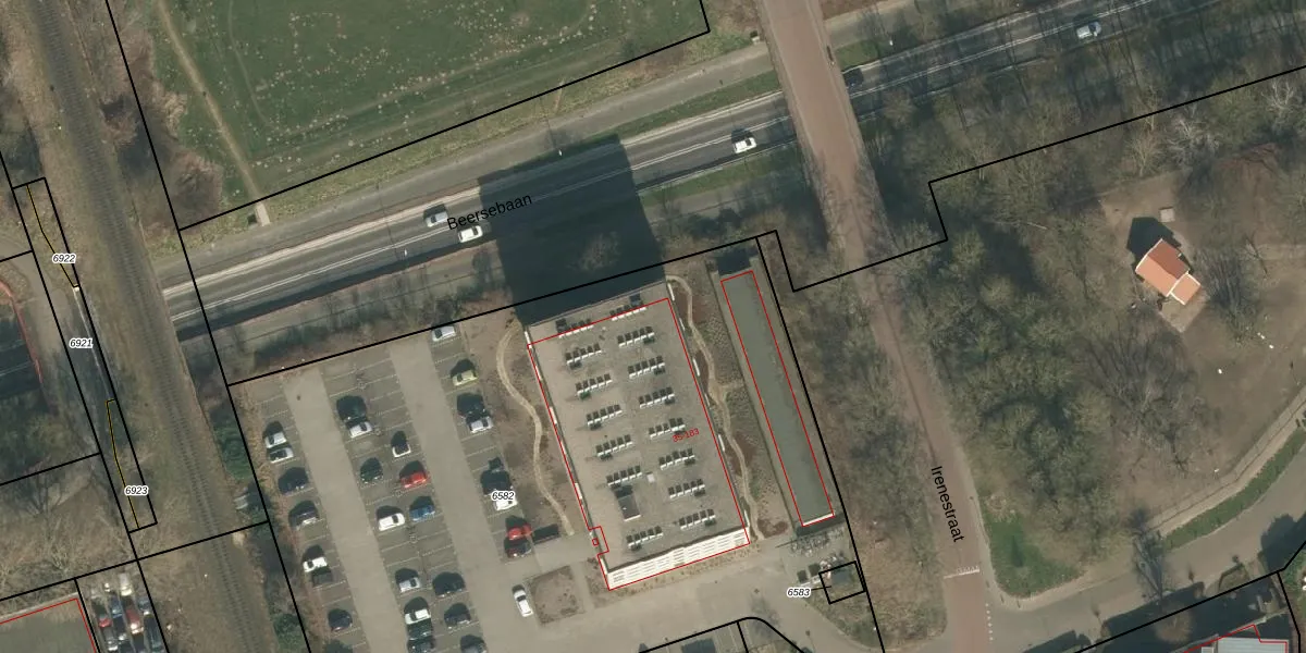Het perceel waarop Irenestraat 79 staat heeft een oppervlakte van 4983 m². Dit is een zeer groot perceel. De perceeloppervlakte wordt geregistreerd door het Kadaster. Gedetailleerde informatie over de maten van dit perceel kunt u vinden in het rapport Kadastrale kaart met maatvoering van Irenestraat 79.