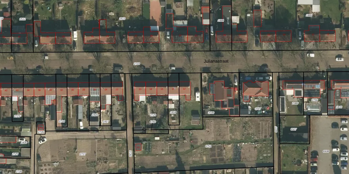 Julianastraat 14 is gelegen op kadastraal perceel CUI00A1918. Deze kadastrale aanduiding is uniek en wordt gebruikt door het Kadaster om eigendomsrechten en andere zakelijke rechten vast te leggen. Het perceel maakt onderdeel uit van de kadastrale gemeente Cuijk.
