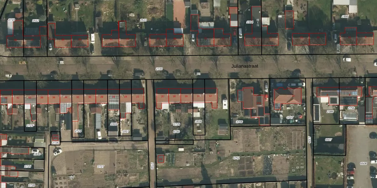 Julianastraat 16 is gelegen op kadastraal perceel CUI00A2729. Deze kadastrale aanduiding is uniek en wordt gebruikt door het Kadaster om eigendomsrechten en andere zakelijke rechten vast te leggen. Het perceel maakt onderdeel uit van de kadastrale gemeente Cuijk.