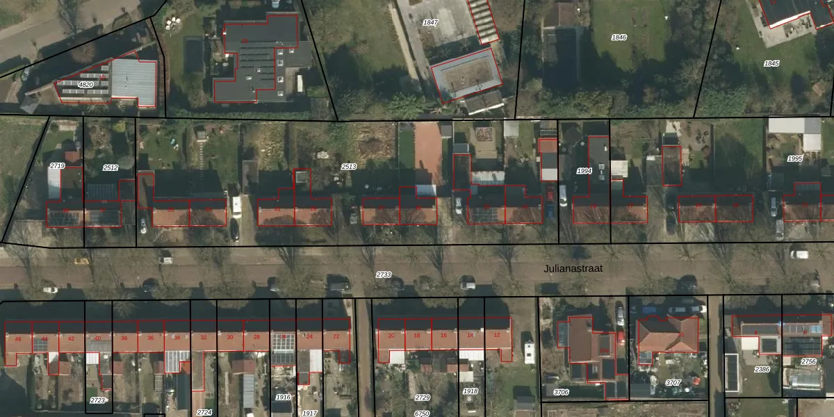 Julianastraat 25 is gelegen op kadastraal perceel CUI00A2513. Deze kadastrale aanduiding is uniek en wordt gebruikt door het Kadaster om eigendomsrechten en andere zakelijke rechten vast te leggen. Het perceel maakt onderdeel uit van de kadastrale gemeente Cuijk.