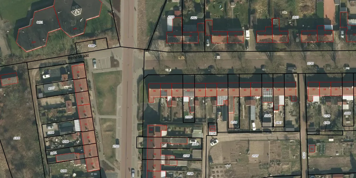 Het perceel waarop Julianastraat 42 staat heeft een oppervlakte van 5548 m². Dit is een zeer groot perceel. De perceeloppervlakte wordt geregistreerd door het Kadaster. Gedetailleerde informatie over de maten van dit perceel kunt u vinden in het rapport Kadastrale kaart met maatvoering van Julianastraat 42.