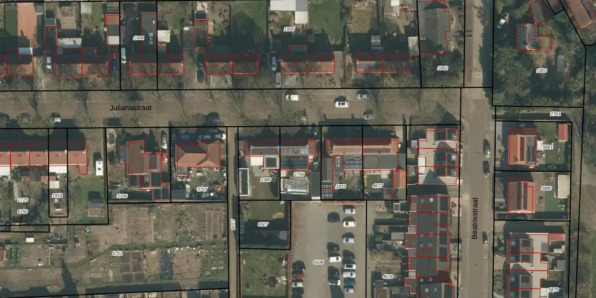 Julianastraat 6 is gelegen op kadastraal perceel CUI00A2756. Deze kadastrale aanduiding is uniek en wordt gebruikt door het Kadaster om eigendomsrechten en andere zakelijke rechten vast te leggen. Het perceel maakt onderdeel uit van de kadastrale gemeente Cuijk.