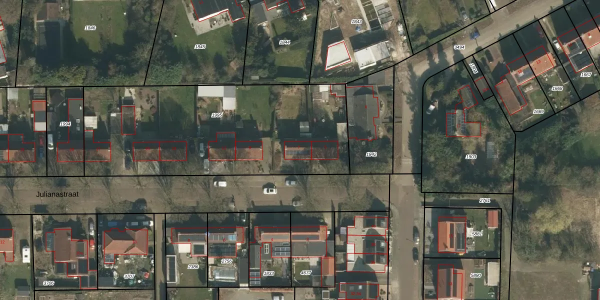 Julianastraat 7 is gelegen op kadastraal perceel CUI00A1995. Deze kadastrale aanduiding is uniek en wordt gebruikt door het Kadaster om eigendomsrechten en andere zakelijke rechten vast te leggen. Het perceel maakt onderdeel uit van de kadastrale gemeente Cuijk.