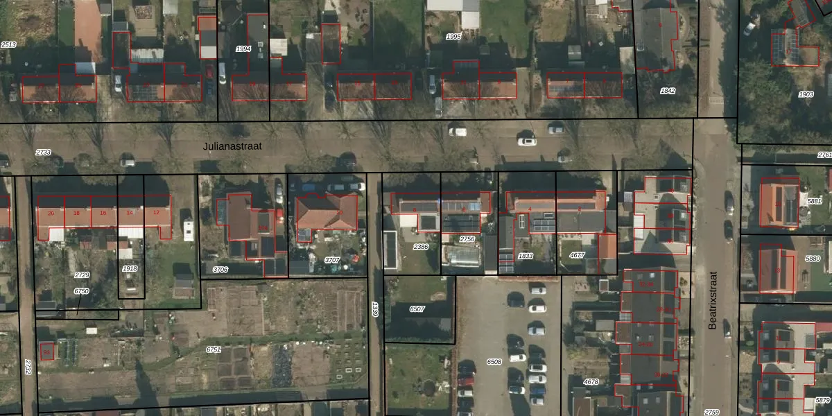 Gebruik de zoekbalk of klik op een perceel voor informatie over de adressen binnen dit perceel.