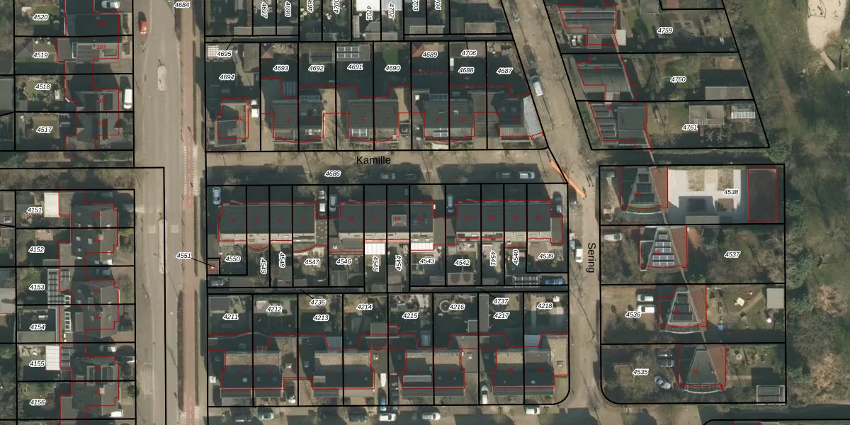 Het perceel waarop Kamille 16 staat heeft een oppervlakte van 203 m². Dit is een middelgroot perceel. De perceeloppervlakte wordt geregistreerd door het Kadaster. Gedetailleerde informatie over de maten van dit perceel kunt u vinden in het rapport Kadastrale kaart met maatvoering van Kamille 16.