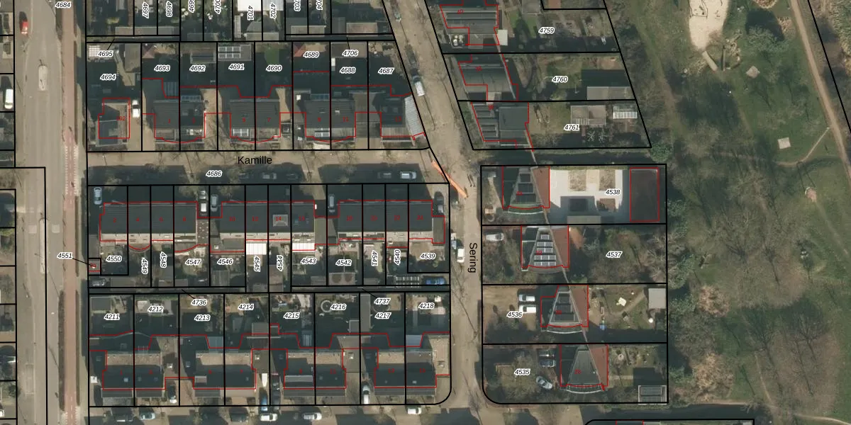 Het perceel waarop Kamille 24 staat heeft een oppervlakte van 204 m². Dit is een middelgroot perceel. De perceeloppervlakte wordt geregistreerd door het Kadaster. Gedetailleerde informatie over de maten van dit perceel kunt u vinden in het rapport Kadastrale kaart met maatvoering van Kamille 24.
